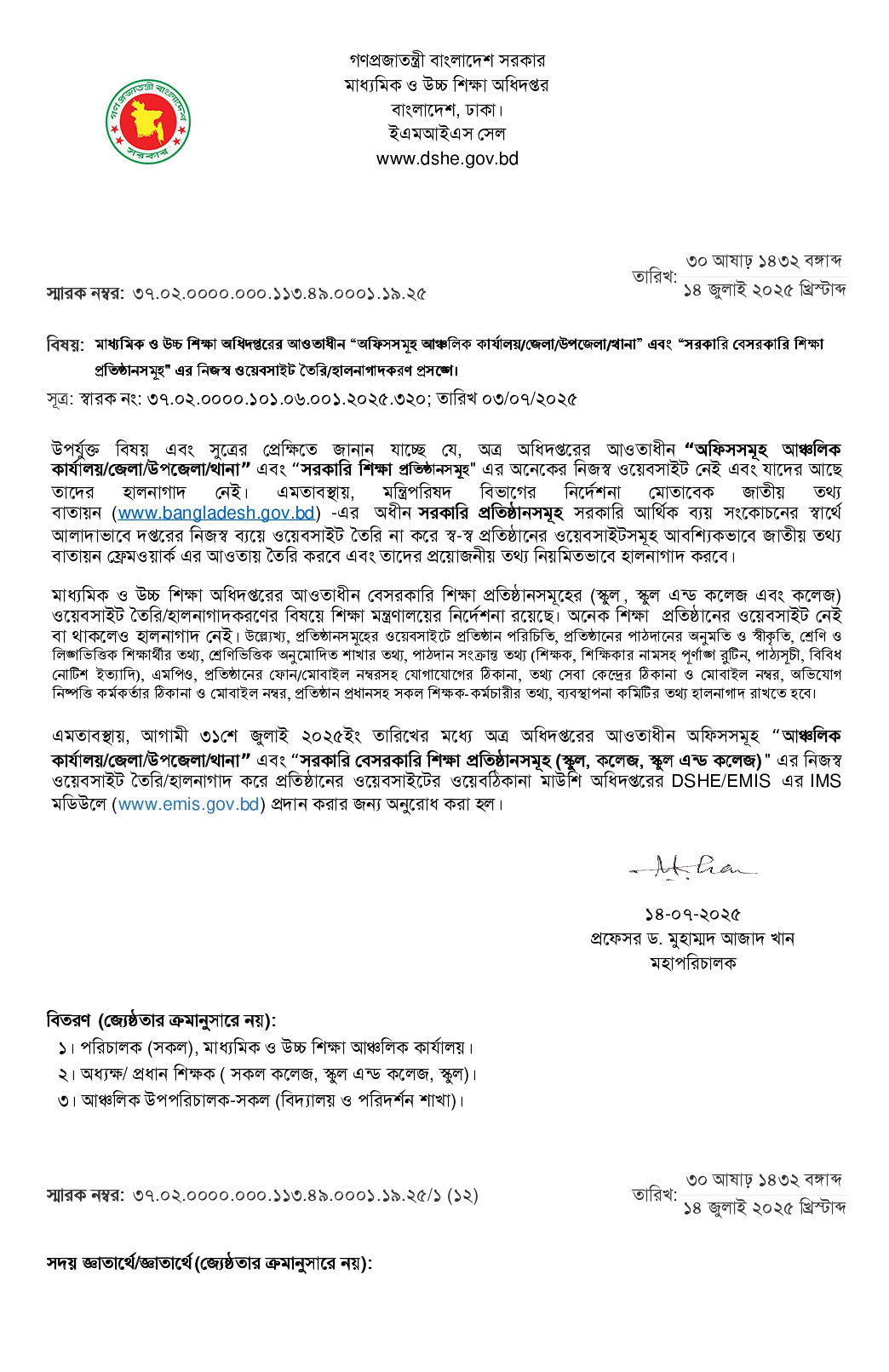 ৩১ জুলাই ২০২৫ এর মধ্যে সকল শিক্ষা প্রতিষ্ঠানের ওয়েবসাইট তৈরীর জন্য মাউশির নির্দেশনা